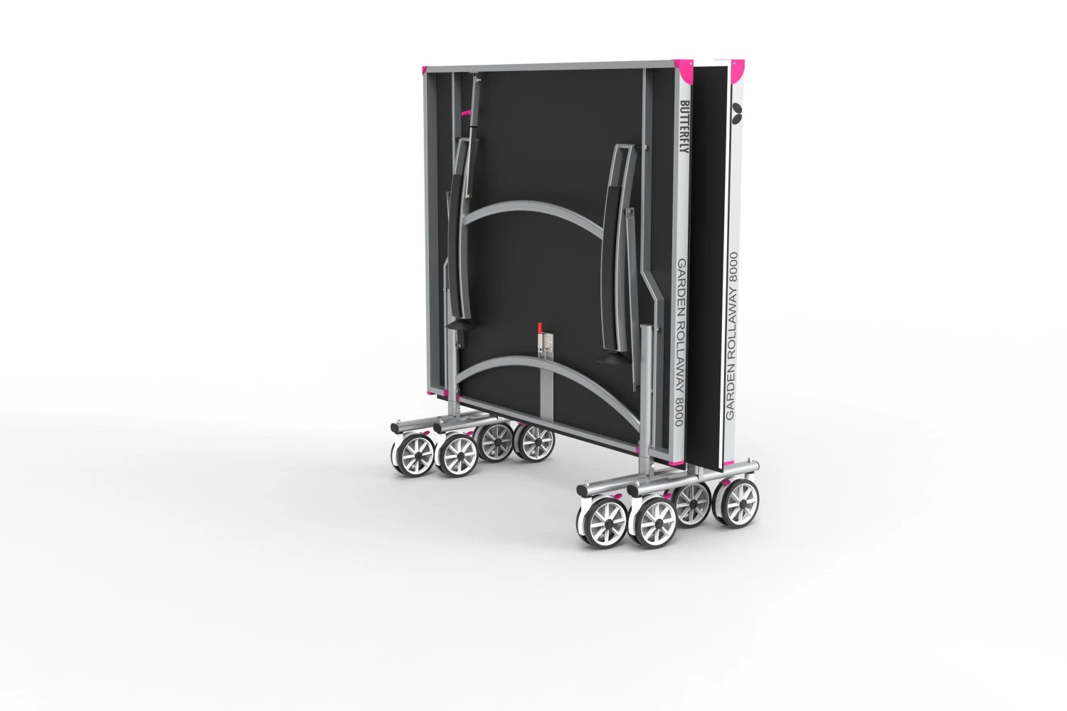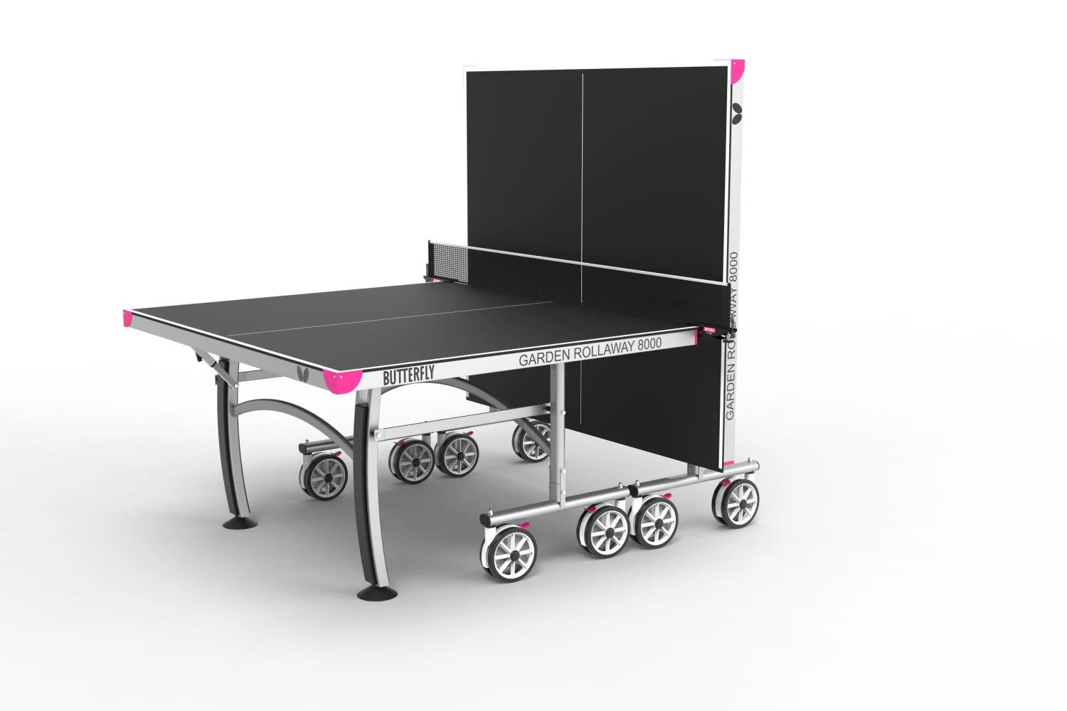 The Butterfly Garden Rollaway 8000 incorporates a 8mm melamine playing top. This top combined with a strong 8-wheel undercarriage is the quickest and easiest system for setting up a table. The Butterfly Garden Rollaway 8000 comes with a Butterfly Elite clip net and post set and is ideal for the homes and gardens